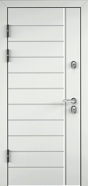 Эта белоснежная входная дверь с линиями №30 станет стильным и надежным элементом для любого интерьера. Благодаря отделке из панелей МДФ с ПВХ-покрытием, дверь выглядит элегантно и обладает высокой устойчивостью к внешним повреждениям. Внешний вид дверного полотна дополнен утонченными линиями, что придает ей современный, лаконичный вид. Прочный каркас из профильных труб 50х25 мм и лист металла толщиной 2 мм обеспечивают отличную защиту и долгий срок службы. Два контура резинового уплотнителя эффективно защищают от шума и холода, создавая комфорт в помещении. Замки Просам и Мосрентген с тремя ригелями гарантируют надежную безопасность. Дополнительно можно заказать зеркала, стеклопакеты и кованые элементы, что делает дверь универсальной для разных дизайнерских решений. Квартирная дверь входная белоснежного цвета с линиями №30 от производителя: быстрое изготовление и монтаж в Заокском, индивидуальные размеры, широкий выбор материалов и фурнитуры, официальная гарантия до 10 лет.