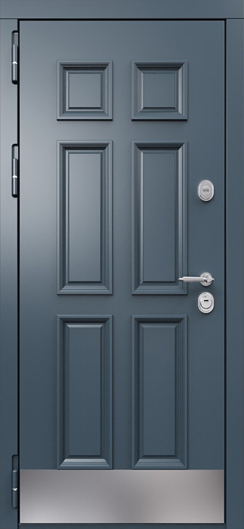 Дверь стальная МДФ эмаль №563 — это удачное сочетание надежной металлической основы и аккуратной декоративной отделки. Каркас из профильной трубы и стальной лист толщиной 2 мм обеспечивают прочность и устойчивость к взлому, а ребра жесткости повышают общий ресурс эксплуатации. Важной особенностью модели является наличие терморазрыва в коробке и полотне: конструкция эффективно препятствует промерзанию зимой, исключает появление конденсата и сохраняет тепло в помещении. Панели МДФ с ПВХ-покрытием, использованные с обеих сторон, защищены от влаги и мелких механических повреждений, благодаря чему дверь долго сохраняет привлекательный внешний вид. Два контура резинового уплотнителя дополнительно усиливают защиту от сквозняков и уличного шума. Такая дверь органично подходит для частных домов, квартир и офисов, сочетая в себе надежность стали и практичность современной отделки. Дверь стальная МДФ эмаль №563 от производителя: быстрое изготовление и монтаж в Заокском, индивидуальные размеры, широкий выбор материалов и фурнитуры, официальная гарантия до 10 лет.