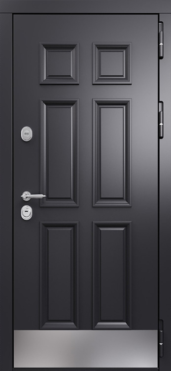 Входная дверь с МДФ №566 создана для тех, кто ценит прочность металла и уютный внешний вид в одном решении. Она одинаково хорошо вписывается в частный дом, квартиру или офис, подчеркивая солидность пространства и обеспечивая надежную защиту. Каркас и полотно собраны из профильных труб, усиленных ребрами жесткости, а стальной лист толщиной 2 мм гарантирует устойчивость к взлому и длительный срок службы. С обеих сторон дверь облицована МДФ панелями с ПВХ-покрытием, что делает поверхность более устойчивой к истиранию и мелким повреждениям, сохраняя привлекательность даже при интенсивной эксплуатации. Панели легко очищаются и не выгорают на солнце, благодаря чему дверь подходит и для уличной установки. Два контура уплотнения надежно защищают от сквозняков и посторонних запахов, а при необходимости можно дополнительно усилить конструкцию тепло- и шумоизоляцией. Модель №566 сочетает в себе сдержанный дизайн и функциональность, делая ее практичным выбором для самых разных помещений. Входная дверь с МДФ №566 от производителя: быстрое изготовление и монтаж в Заокском, индивидуальные размеры, широкий выбор материалов и фурнитуры, официальная гарантия до 10 лет.