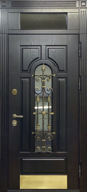Парадная металлическая дверь с фрамугой №1 — это элегантное и надежное решение для вашего входа. Внешняя и внутренняя отделка из МДФ придает двери не только привлекательный вид, но и устойчивость к внешним повреждениям, что гарантирует долговечность и сохранение первоначального вида. Каркас из профильной трубы и металл толщиной 2 мм обеспечивают прочность и надежность конструкции. Наличие фрамуги позволяет пропускать больше света, создавая ощущение простора. Для дополнительной безопасности предусмотрены блокираторы и замки с тремя ригелями от надежных производителей, таких как Просам и Мосрентген. Варианты отделки, возможность добавления стеклопакетов, зеркала или кованых элементов позволяют адаптировать дверь под любой стиль интерьера. Парадная металлическая дверь с фрамугой №1 от производителя: быстрое изготовление и монтаж в Заокском, индивидуальные размеры, широкий выбор материалов и фурнитуры, официальная гарантия до 10 лет.