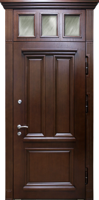 Дверь с сувальдным замком и фрамугой №34 идеально сочетает в себе стиль и надежность. Панель из натурального дерева, использованная как для внешней, так и для внутренней отделки, придает двери благородный и элегантный вид, делая её отличным выбором для помещений с классическим или современным интерьером. Каркас двери выполнен из профильной трубы 50х25 мм и усилен ребрами жесткости, что гарантирует прочность конструкции. Замки от производителей "Просам" и "Мосрентген" с тремя ригелями обеспечивают высокий уровень безопасности. Дверь оснащена уплотнителями с двумя контурами, что гарантирует отличную герметичность, а возможность замены замков и добавления кованых элементов делает её адаптируемой под любые требования. Кроме того, дверь можно дополнить зеркалом, стеклопакетом или видеодомофоном для еще большего комфорта. Входная дверь с сувальдным замком и фрамугой №34 от производителя: быстрое изготовление и монтаж в Заокском, индивидуальные размеры, широкий выбор материалов и фурнитуры, официальная гарантия до 10 лет.