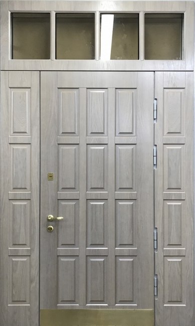Входная дверь с остекленной фрамугой №1 привлекает внимание благодаря стильному и современному дизайну. Ее внешняя и внутренняя отделка из МДФ выглядит элегантно и долговечно, а также устойчива к механическим повреждениям, таким как царапины и вмятины. Каркас из профильной трубы и металл толщиной 2 мм гарантируют прочность и надежность. Наличие фрамуги позволяет создать эффектное освещение и визуально расширяет пространство, при этом сохранение теплоизоляции обеспечено двумя контурами резинового уплотнителя. Блокираторы и качественные замки, такие как Просам и Мосрентген, надежно защищают от взлома. Возможность дополнить дверь стеклопакетом, зеркалом или коваными элементами делает эту модель еще более универсальной для различных интерьеров. Входная дверь с остекленной фрамугой №1 от производителя: быстрое изготовление и монтаж в Заокском, индивидуальные размеры, широкий выбор материалов и фурнитуры, официальная гарантия до 10 лет.