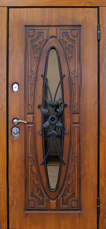 В частном доме дверь должна быть не просто барьером, а настоящей визитной карточкой, и именно эту задачу решает входная дверь со стеклом и ковкой №23. Натуральное дерево в отделке придает ей благородный и теплый вид, а декоративная ковка превращает конструкцию в выразительный элемент архитектуры. Внутри скрыт стальной каркас с листом металла 1,5 мм и противосъёмными блокираторами, что обеспечивает прочность и устойчивость к взлому. Особого внимания заслуживает наличие терморазрыва как в коробке, так и в полотне: он защищает от промерзания, исключает появление конденсата и помогает сохранять тепло зимой и прохладу летом. Тройной контур магнитного уплотнения усиливает герметичность и снижает уровень уличного шума, а пенопласт повышенной плотности в качестве наполнителя добавляет теплоизоляции. Входная дверь в частный дом со стеклом и ковкой №23 гармонично сочетает надежность и эстетику, позволяя владельцу адаптировать её под стиль фасада с помощью дополнительных декоративных решений. Входная дверь в частный дом со стеклом и ковкой №23 от производителя: быстрое изготовление и монтаж в Заокском, индивидуальные размеры, широкий выбор материалов и фурнитуры, официальная гарантия до 10 лет.