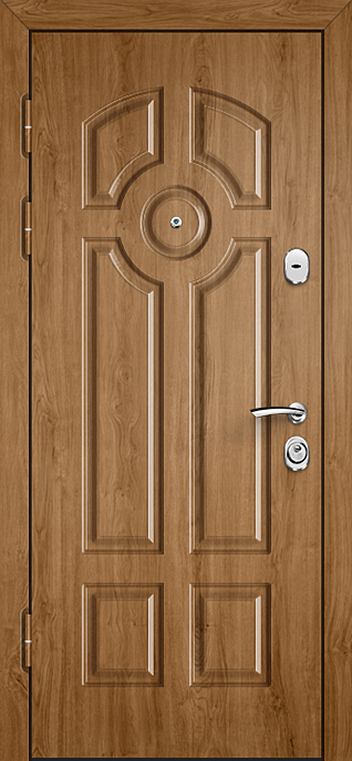 Филёнчатая отделка всегда придаёт дверному полотну особый шарм, создавая эффект глубины и аккуратного рельефа. Входная дверь МДФ с внешней панелью под филёнку №537 универсальна и одинаково хорошо смотрится на фасаде частного дома, в офисе или в квартире. Отделка из МДФ-плиты устойчива к мелким повреждениям, не выгорает и сохраняет аккуратный вид при ежедневной эксплуатации, а при необходимости легко комбинируется с другими декоративными элементами. В основе конструкции — каркас из профильной трубы, лист стали толщиной 2 мм и рёбра жёсткости, обеспечивающие надёжность и жёсткость всей системы. Для удобства и безопасности предусмотрены два замка: сувальдный Просам и цилиндровый Мосрентген. Два контура уплотнения повышают комфорт эксплуатации, а при желании дверь можно дополнить зеркалом, стеклопакетом или коваными вставками, сделав её не только прочной, но и выразительной частью интерьера. Входная дверь МДФ и внешней панелью под филенку №537 от производителя: быстрое изготовление и монтаж в Заокском, индивидуальные размеры, широкий выбор материалов и фурнитуры, официальная гарантия до 10 лет.