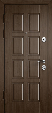 Надёжность и строгая функциональность – вот что олицетворяет входная дверь в квартиру стал №77. Её прочная основа выполнена из профильной трубы и стального листа толщиной 2 мм с дополнительными рёбрами жёсткости, что делает конструкцию устойчивой к нагрузкам и долговечной. Внутри и снаружи использованы накладки МДФ, практичный материал, который сохраняет аккуратный вид, не боится случайных царапин и хорошо подходит для помещений любого типа. Два замка — сувальдный Просам и цилиндровый Мосрентген — обеспечивают многоуровневую защиту, а при желании их можно заменить на более современные или даже умные электронные механизмы. Дверь комплектуется двумя контурами резинового уплотнителя, которые препятствуют проникновению сквозняков и уличного шума, а при необходимости конструкция легко дополняется шумо- и теплоизоляцией. Такой вариант одинаково уместен в квартире, частном доме или офисе, где ценят баланс безопасности и практичности. Входная дверь в квартиру стал №77 от производителя: быстрое изготовление и монтаж в Заокском, индивидуальные размеры, широкий выбор материалов и фурнитуры, официальная гарантия до 10 лет.