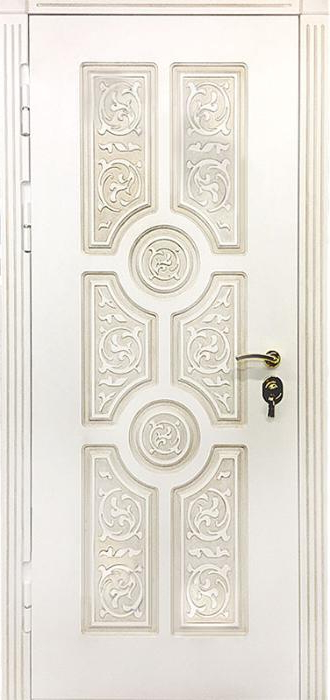 Дверь уличная с терморазрывом №49 — это надежное решение для частных домов и коттеджей, которое обеспечит комфорт и защиту от внешних факторов. С терморазрывом в коробке и полотне, эта дверь исключает проникновение холода, сохраняя тепло в доме и предотвращая появление конденсата. Внешняя и внутренняя отделка выполнена с использованием накладки МДФ, что придает двери привлекательный вид и долговечность, стойкость к механическим повреждениям и атмосферным воздействиям. Ковка, как элемент декора, добавляет изысканности и подчеркивает индивидуальность. Металлическая конструкция с толщиной полотна 1,5 мм и каркасом из профильных труб гарантирует прочность и устойчивость. Уплотнение с тремя контурами магнитного герметика и высокая шумо- и теплоизоляция на основе пенопласта делают дверь идеальной для использования в уличных условиях. Возможность замены замков и добавления стеклопакетов или кованых элементов позволяет индивидуализировать дверное решение под любые потребности. Дверь уличная с терморазрывом №49 от производителя: быстрое изготовление и монтаж в Заокском, индивидуальные размеры, широкий выбор материалов и фурнитуры, официальная гарантия до 10 лет.