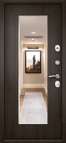 Надёжность металлической двери всегда в приоритете, но когда она получает дополнительное оснащение, результат становится особенно удобным. Входная дверь с зеркалом №78 удачно объединяет прочность конструкции и практичность деталей: массивный каркас из профильной трубы, лист стали толщиной 2 мм и усиленные рёбра жёсткости формируют крепкий защитный барьер, а зеркало на внутренней стороне делает её частью интерьера, экономя место и добавляя визуального простора. Снаружи используется молотковое напыление, устойчивое к царапинам и погодным перепадам, благодаря чему дверь подходит как для квартиры, так и для частного дома. Внутренняя отделка выполнена плитой МДФ, которая выглядит стильно и сохраняет аккуратность даже при активной эксплуатации. Два контура уплотнения помогают защитить помещение от сквозняков, а при необходимости конструкцию можно дополнить шумоизоляцией, современными замками и даже видеодомофоном. Входная дверь с зеркалом №78 от производителя: быстрое изготовление и монтаж в Заокском, индивидуальные размеры, широкий выбор материалов и фурнитуры, официальная гарантия до 10 лет.