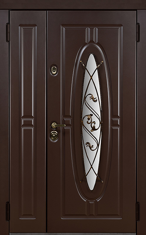 Двойная уличная дверь с овальным стеклом и художественной ковкой №14 — это уникальное сочетание функциональности и эстетики. Панели МДФ с ПВХ-покрытием, используемые как для внешней, так и для внутренней отделки, обладают высокой стойкостью к внешним воздействиям, сохраняя свой внешний вид на долгие годы. Внешний декор в виде художественной ковки придаёт двери особый шарм, подчеркивая её стиль и индивидуальность. Двойная уличная дверь с овальным стеклом и художественной ковкой №14 от производителя: быстрое изготовление и монтаж в Заокском, индивидуальные размеры, широкий выбор материалов и фурнитуры, официальная гарантия до 10 лет.