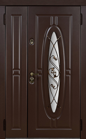 Внутри дверей установлены замки российского производства с тремя ригелями, что обеспечивает дополнительную безопасность. Возможно дополнить дверь стеклопакетом, зеркалом или коваными элементами для придания ещё большего изящества и практичности.