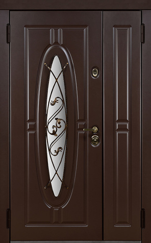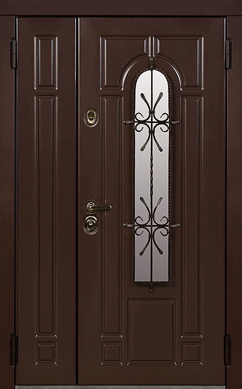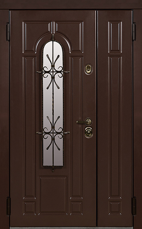 Эта металлическая двухстворчатая дверь с арочным стеклопакетом №15 представляет собой идеальный баланс между эстетикой и прочностью. Арочное стекло добавляет в её дизайн утончённость, а ковка в декоре придаёт изысканный, но в то же время крепкий и надёжный вид. Плита МДФ, используемая как для внешней, так и для внутренней отделки, не только сохраняет прекрасный внешний вид, но и устойчива к механическим повреждениям. Металлическая двухстворчатая дверь с арочным стеклопакетом №15 от производителя: быстрое изготовление и монтаж в Заокском, индивидуальные размеры, широкий выбор материалов и фурнитуры, официальная гарантия до 10 лет.