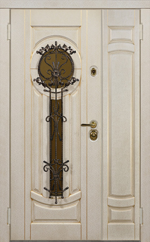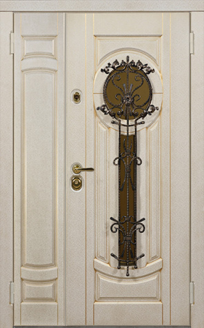 Уличная двухстворчатая дверь со стеклом и кованой решеткой №26 — это не только надежная защита для вашего дома, но и элемент, который подчеркнет его стиль и индивидуальность. Внешняя отделка из МДФ с ПВХ обеспечивает долговечность, устойчивость к внешним воздействиям и сохранение эстетического вида на долгое время. Добавление кованой решетки и стеклопакета придает двери элегантности, а также улучшает светопропускание, создавая комфортное освещение в вашем помещении. Уличная двухстворчатая дверь со стеклом и кованой решеткой №26 от производителя: быстрое изготовление и монтаж в Заокском, индивидуальные размеры, широкий выбор материалов и фурнитуры, официальная гарантия до 10 лет.