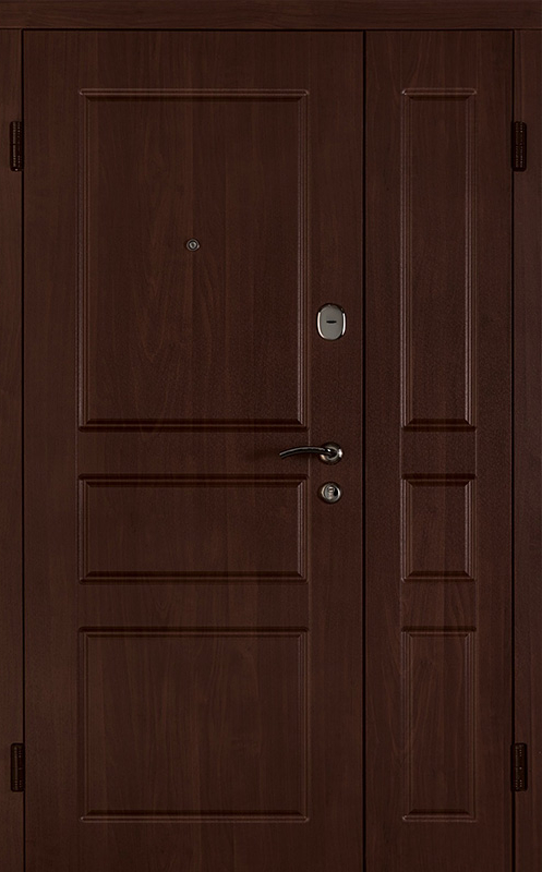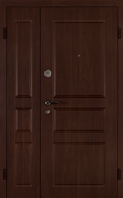 Коричневая входная полуторная дверь с филенчатой створкой №4 – это надежное и стильное решение для вашего дома или офиса. Внешняя и внутренняя отделка из МДФ с ПВХ обеспечивает долговечность и устойчивость к повреждениям, сохраняя при этом элегантный внешний вид. Прочные материалы конструкции, такие как профильная труба 50х25 мм и лист металла толщиной 2 мм, гарантируют стабильность и безопасность. Ребра жесткости из профильных труб 40х25 мм усиливают дверное полотно, а уплотнение с двумя контурами надежно защищает от внешних факторов. Несмотря на отсутствие терморазрыва, в двери реализованы терморазрывы в коробке и полотне, что помогает улучшить теплоизоляцию. Возможность выбора дополнительных опций, таких как шумоизоляция, делает эту дверь универсальной для различных условий эксплуатации. Коричневая входная полуторная дверь с филенчатой створкой №4 от производителя: быстрое изготовление и монтаж в Заокском, индивидуальные размеры, широкий выбор материалов и фурнитуры, официальная гарантия до 10 лет.