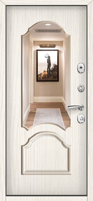 Входная дверь с зеркальной вставкой для прихожей №21 — это не просто надежное, но и стильное решение для частных домов, квартир и офисов. Благодаря прочному каркасу из профильной трубы 50х25 мм и металлическому полотну толщиной 2 мм, дверь гарантирует долговечность и высокую степень защиты. Внешняя отделка с порошковым напылением не только добавляет эстетичности, но и защищает от атмосферных воздействий, а внутренняя отделка из панелей МДФ ПВХ устойчива к механическим повреждениям. Вставка зеркала на двери добавляет современности и практичности, расширяя пространство прихожей. Два контура резинового уплотнителя эффективно предотвращают попадание холода и шума. Дверь оборудована двумя замками, что повышает безопасность. Также можно заменить замки на более современные модели и добавить опции, такие как стеклопакет или видеодомофон, что делает эту модель еще более универсальной. Входная дверь с зеркальной вставкой для прихожей №21 от производителя: быстрое изготовление и монтаж в Заокском, индивидуальные размеры, широкий выбор материалов и фурнитуры, официальная гарантия до 10 лет.