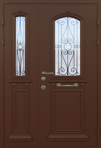 Входная дверь с ковкой и стеклом №12