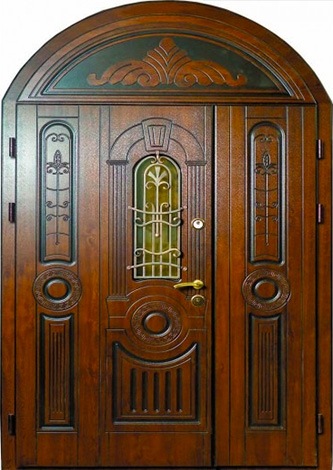 Дверь входная металлическая с стеклом и ковкой для дома №34