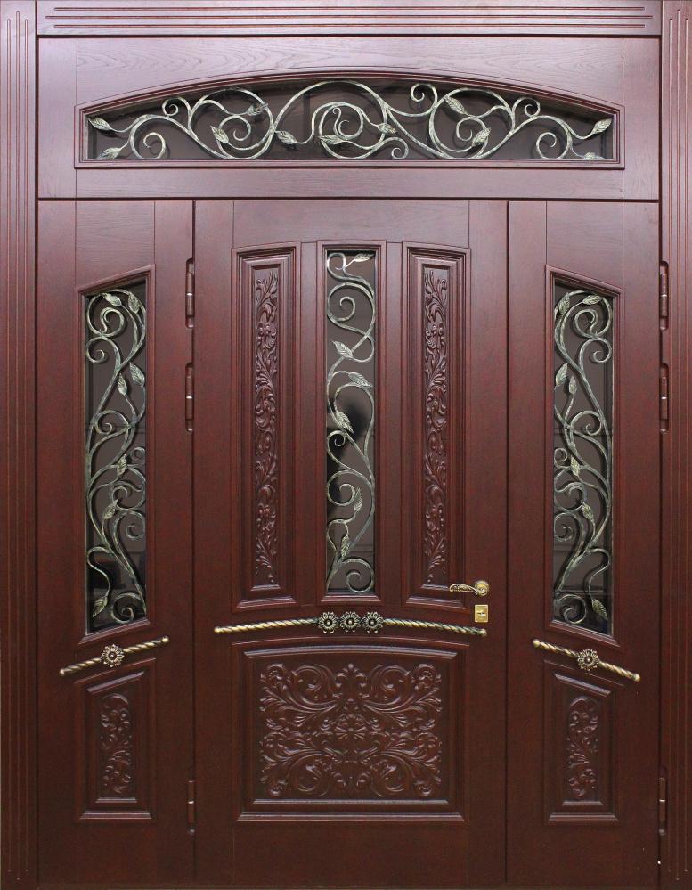 Большая входная дверь в частный дом со стеклом №328 создана для тех, кто ценит солидность и выразительный облик парадного входа. Широкое полотно на основе стальной конструкции с профилем 50х25 мм и листом металла толщиной 2 мм обеспечивает надежность и устойчивость к нагрузкам, а массив дуба в отделке придает дверному блоку статусный вид и долговечность. Натуральное дерево отличается стойкостью к повреждениям и долго сохраняет свой первозданный оттенок, что особенно важно для фасадных решений. Вставка из стекла добавляет естественного света в холл и делает интерьер более гостеприимным. Двойной контур резинового уплотнителя защищает от сквозняков, а наличие блокираторов повышает уровень безопасности. Такая дверь гармонично смотрится в коттеджах и частных домах, где парадный вход становится главным акцентом архитектуры. Большая входная дверь в частный дом со стеклом №328 от производителя: быстрое изготовление и монтаж в Заокском, индивидуальные размеры, широкий выбор материалов и фурнитуры, официальная гарантия до 10 лет.