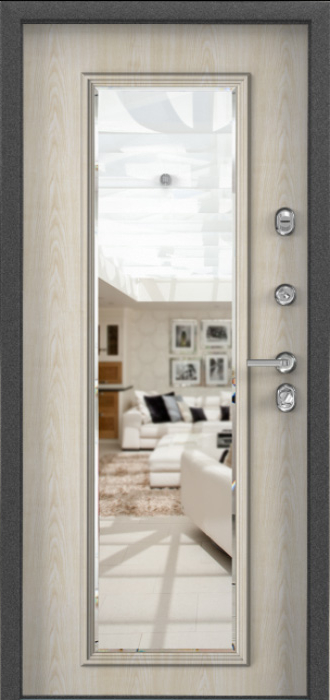 Сочетание прочной конструкции и декоративных решений делает эту модель особенно практичной для частного дома или квартиры. Каркас и полотно выполнены из профильной трубы с листом стали толщиной 2 мм, усиленные рёбрами жёсткости и блокираторами, что обеспечивает высокую надёжность. Два контура резинового уплотнителя препятствуют проникновению влаги и сквозняков, а порошковое напыление на внешней поверхности защищает металл от коррозии и сохраняет аккуратный вид даже при воздействии осадков и солнечного света. Внутренняя отделка панелями МДФ ПВХ создаёт уютный интерьерный акцент и устойчива к повседневным нагрузкам. Дверь входная металлическая уличная в дом №12 дополнена зеркалом, которое делает её не только функциональной, но и более удобной в быту. Для безопасности предусмотрены два замка российского производства — сувальдный Просам и цилиндровый Мосрентген, каждый с тремя ригелями. Дополнительно дверь можно оснастить стеклопакетом или коваными элементами, превратив её в индивидуальное решение для конкретных задач. Дверь входная металлическая уличная в дом №12 от производителя: быстрое изготовление и монтаж в Заокском, индивидуальные размеры, широкий выбор материалов и фурнитуры, официальная гарантия до 10 лет.